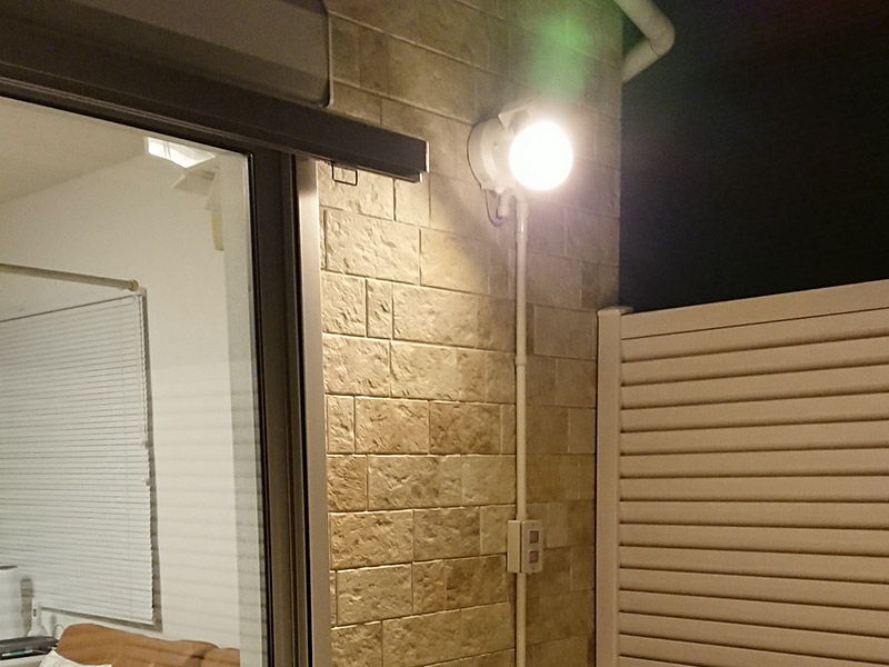 リビングからそのまま外へ出られる、照明にもこだわったデッキスペース