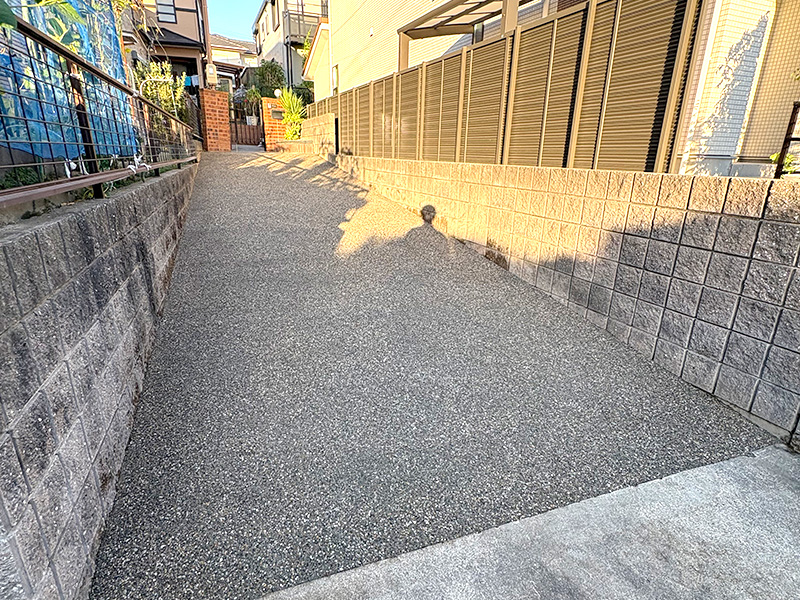 コンクリート打設の2日間は、門扉からの出入りができなくなるため、事前に施主様と日程を調整しながら施工を進めさせていただきました。ご協力に感謝いたします。